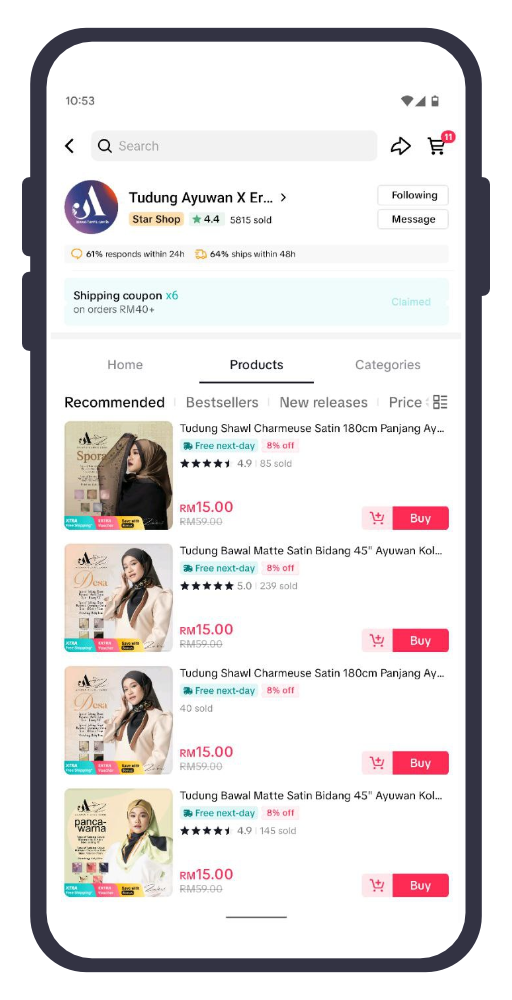 BERANI TAMPIL CANTIK Keanggunan Bermula Di Sini Daripada bawal klasik hingga shawl moden, setiap helaian Ayuwan direka untuk gaya harianmu. Beli di TikTok